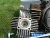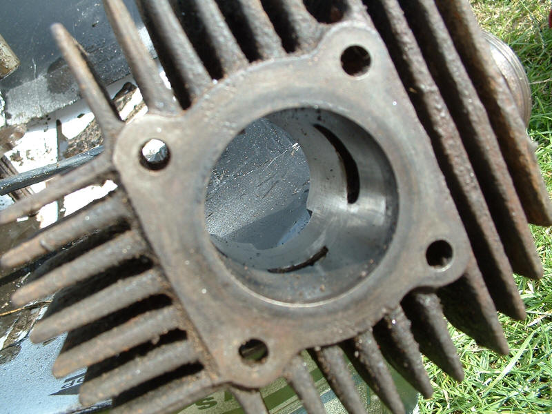 v-shape cuts at the top edge of two ports, and a scored piston. New piston and