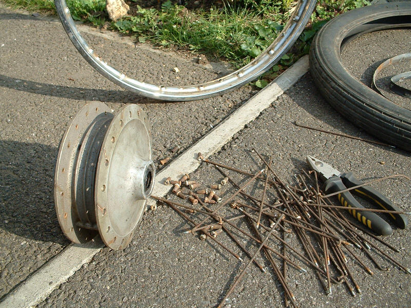 So, it was another sunny day, shame to waste it on the garden or kitchen, I decide to remove the front and rear wheel spokes and separate the front forks. It took longer than I thought....